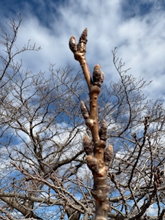 出勤〜! 🌸 今日散歩中に 桜の木発見 まだまだつぼみだけど お花見好きだから ほんとたのしみ 10回くらいしたい🍡